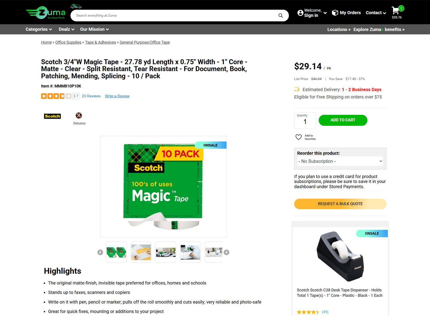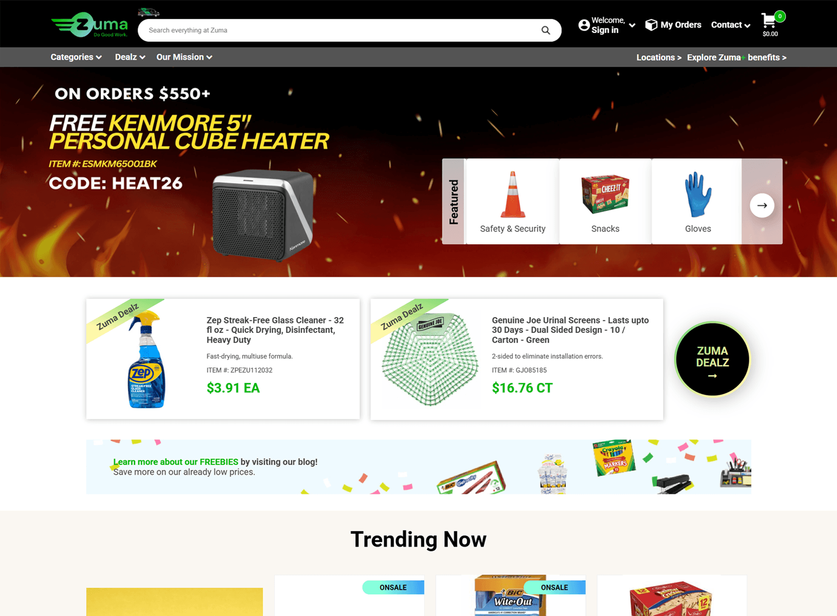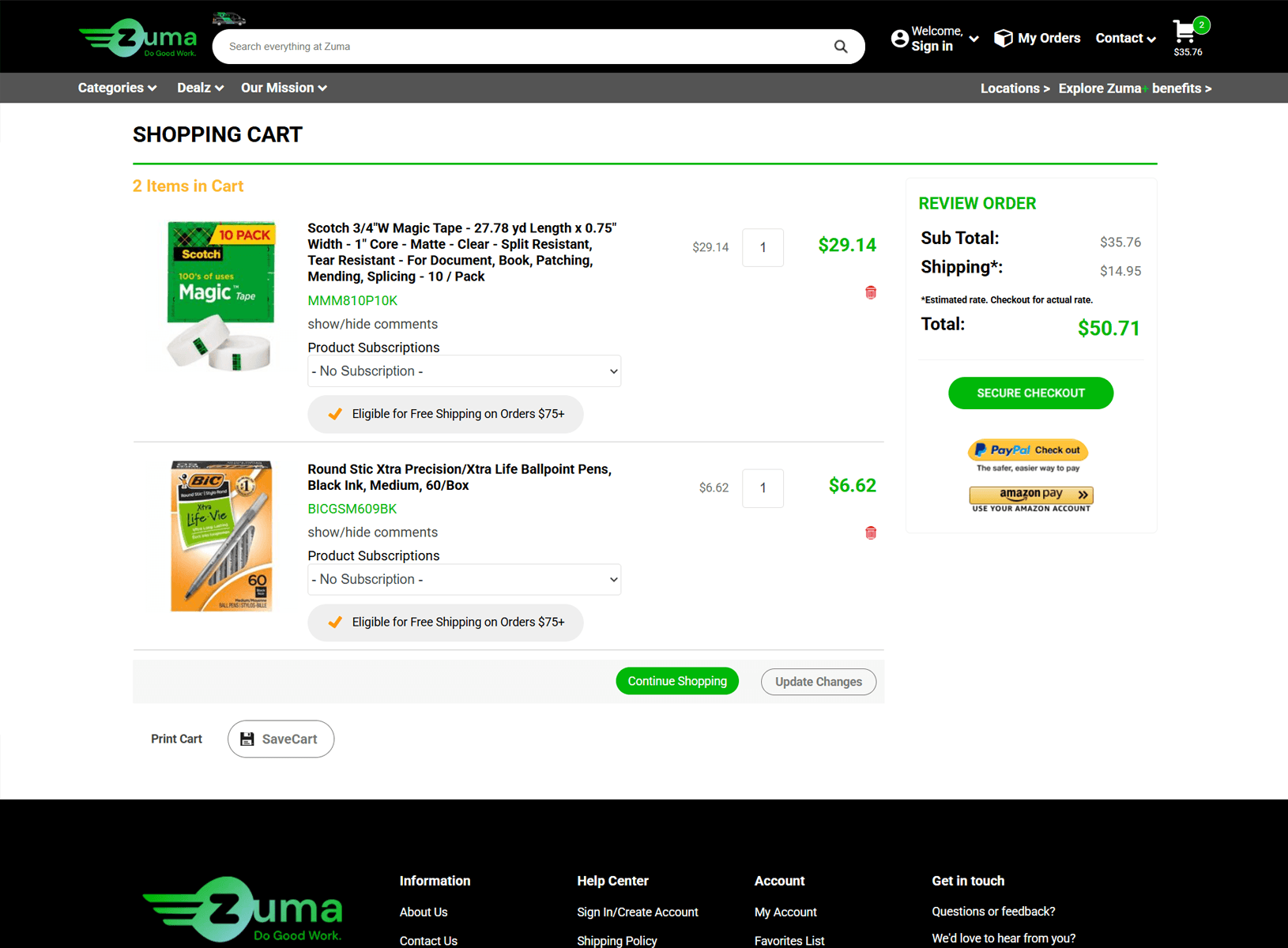 Zuma is an online office supplies superstore with personal service, a quick and easy-to-use website, and prices guaranteed to meet or beat the office products giants Office Depot, Staples and OfficeMax. And, we deliver most orders in 1 – 2 business days nationwide!